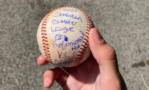 Momentos después, el jardinero sinaloense quien es egresado de la Liga Pequeño Culhuacan, recibió la pelota de su primer cuadrangular y de su primer imparable para guardarlo como recuerdo de un excelente debut como profesional, que podría ser el comienzo de un futuro prometedor.